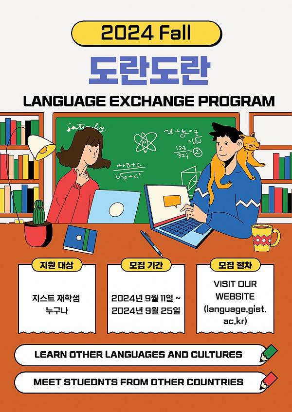 Language Exchange Program (Doran Doran: 도란도란) is designed to help Korean and international students understand each other's language and culture by performing language exchange activities. The Office of Academic Planning (Language Education) seeks to recruit Korean and international students who can share their language and culture of their home country to cultivate our learning environment at GIST. We highly encourage you to participate in this program.
