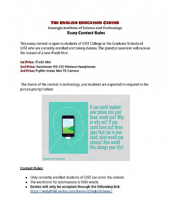GIST EEC 1st English Essay Contest 페이지 정보 작성자 EEC 작성일14-06-13 17:33 조회7,118회 댓글0건 이전글 다음글 목록 본문 댓글목록 등록된 댓글이 없습니다. 이전글 다음글 목록