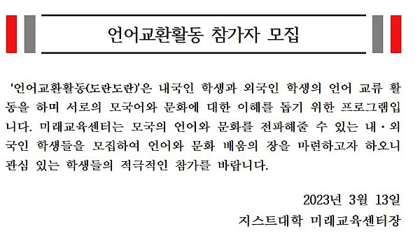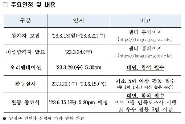 - 신청서: 센터 홈페이지(https://language.gist.ac.kr)