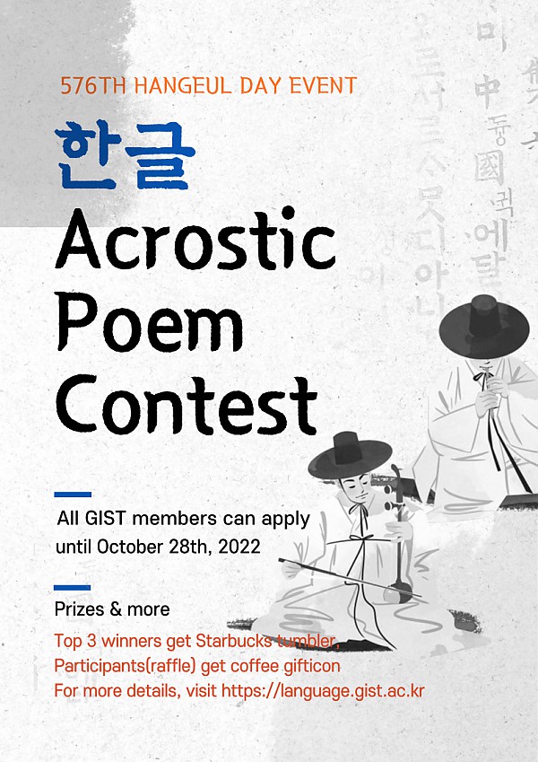(2) Any poem is fine. If it contains the meaning of Hangeul Day or the love of Hangeul, it will be considered as an excellent work.