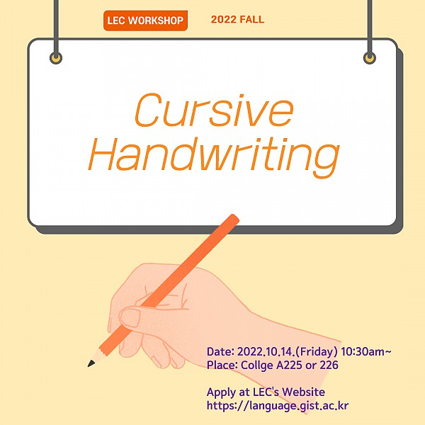 ◾ Teaser: When traveling abroad, it is necessary to sign your name on official documents and paperwork, especially when passing through immigration. However, has anyone ever taught you how to sign your name using English cursive script? Come to this workshop to practice the basics of cursive writing and develop your own unique signature.