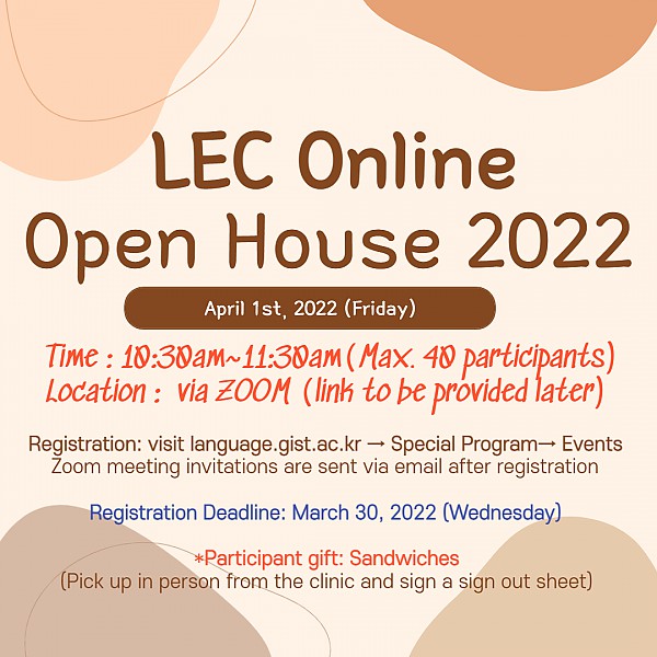 Join us for LEC Online Open House! Meet our language instructor and talk freely with GIST students.