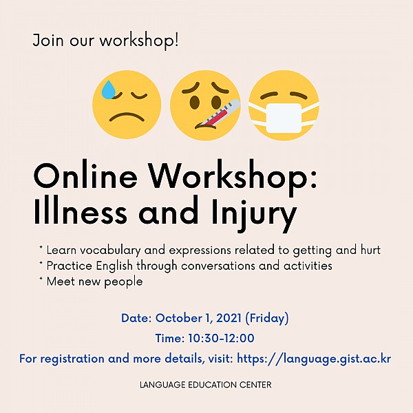 When we visit a doctor or talk with friends, sometimes we need to express how we feel when we get sick or hurt. In this online workshop, students are introduced to vocabulary and expressions related to common illnesses and injuries that people may experience in daily life. Students also have opportunities to practice what they learn through activities and discussions.