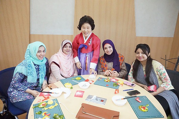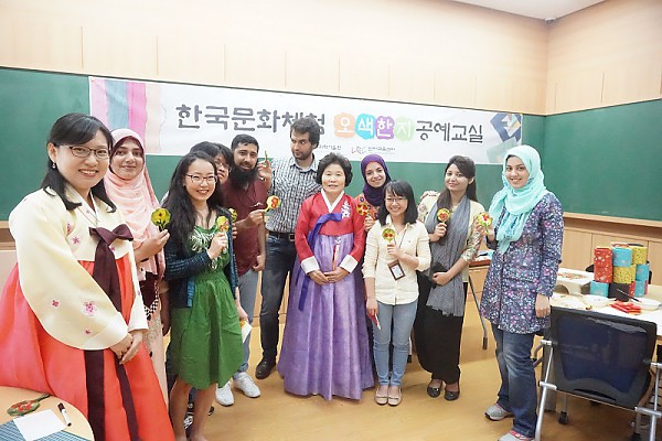 International students at GIST who are taking Korean I course learnt to make traditional Korean-style handy mirror on May 18th. Yang Bok In, a specialist in Korean paper art was invited to teach. All of the students had great fun. I suppose this must be a good opportunity for them to realize how beautiful Korean art is.