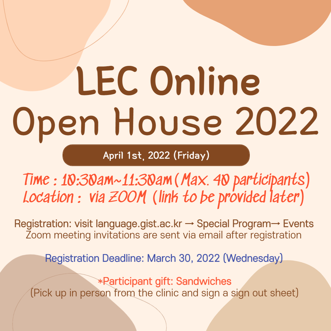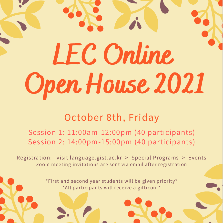 Join us for LEC Online Open House!  Meet our language instructors and talk with GIST students.