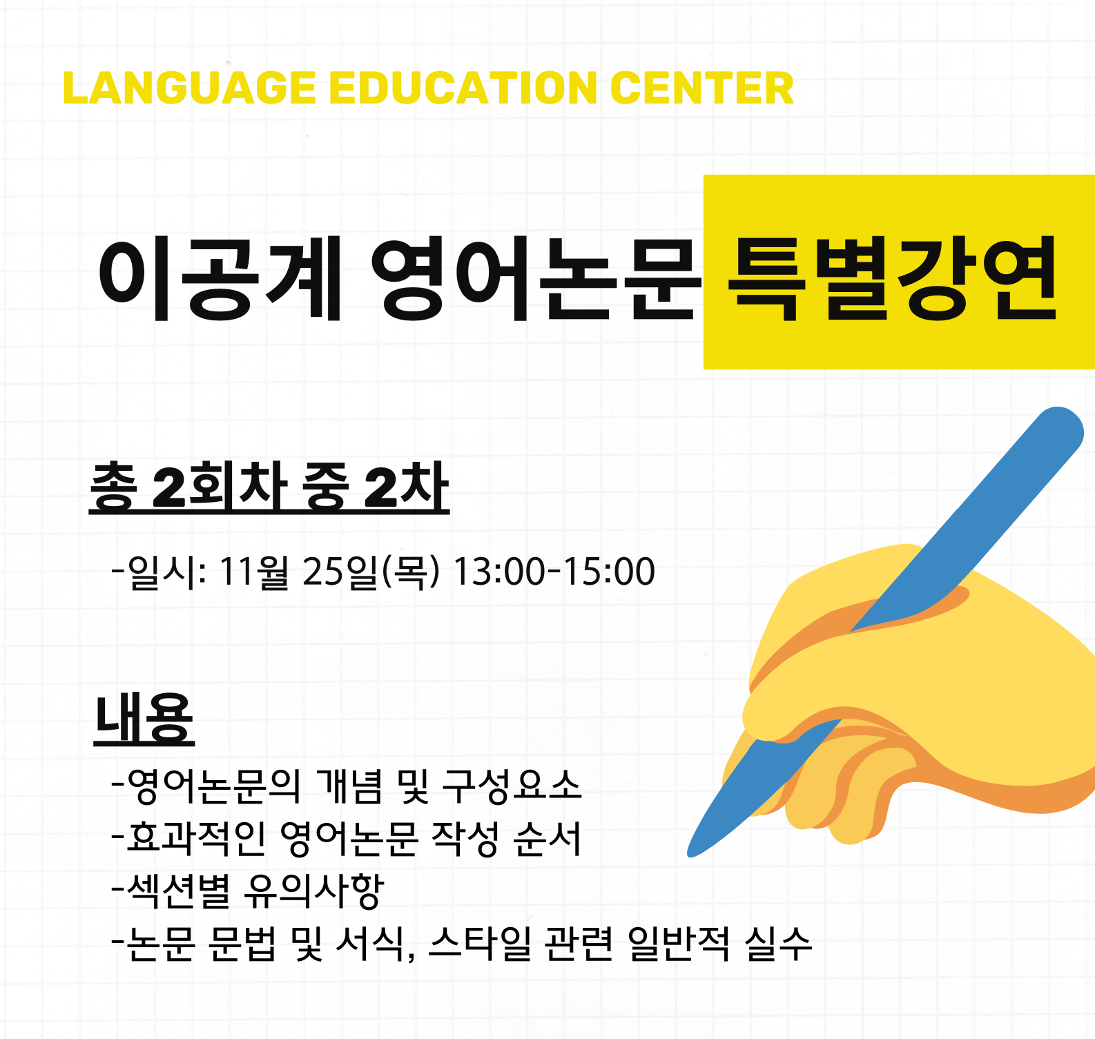 주제: 이공계 논문쓰기 특별강연(1회차)