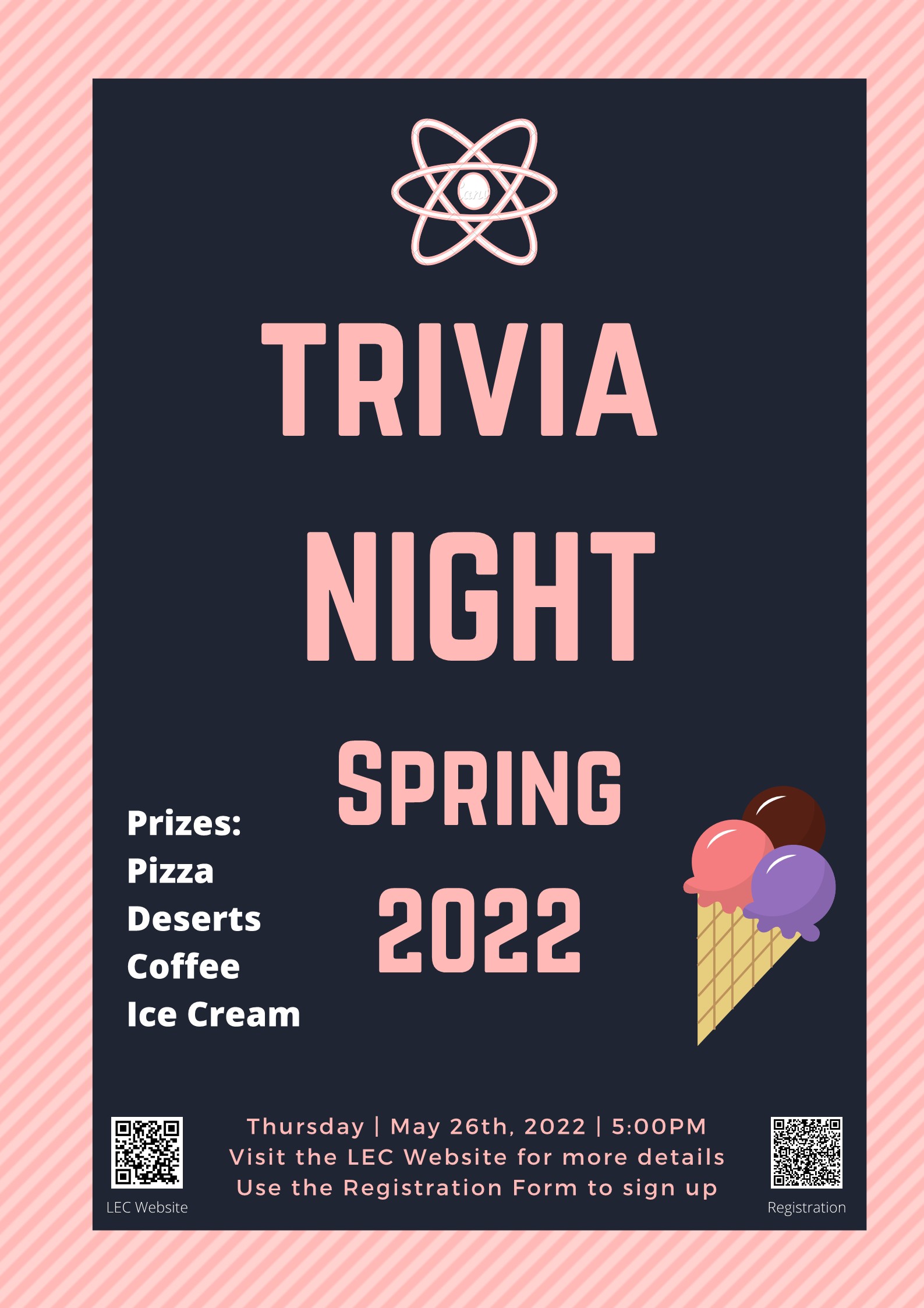 Are you ready to show off your knowledge while competing with your classmates and winning great prizes? Join us for our Fall LEC Trivia Night. You can solve puzzles, answer trivia and have a great time in a relaxing environment.